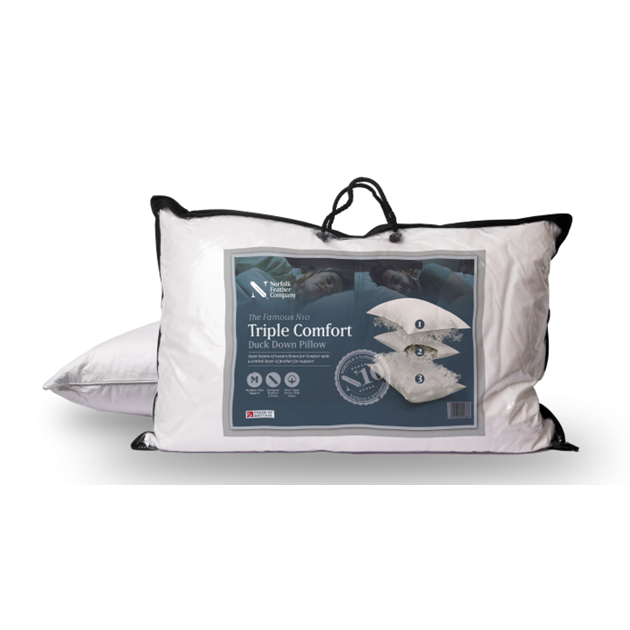 We are proud to announce our Famous N10 pillow which innovatively uses a triple layer construction is now available in a Super King size option. The top and bottom layers are filled with plush 60% duck down clusters giving you a super-soft cloud-like feeling when you rest your head. In the middle, a cotton encased layer of duck feather and down provide a supportive inner core and adds firmness. This unique combination means you get the best properties from both the feather and down with no compromises.