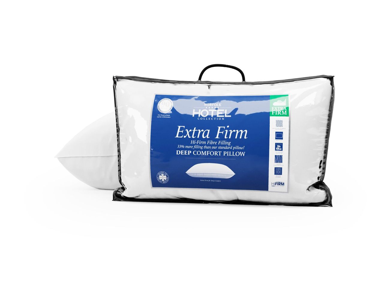 Hollowfibre Extra Firm Pillow 30% Extra Filling 74x48cm Norfolk 5* Hotel