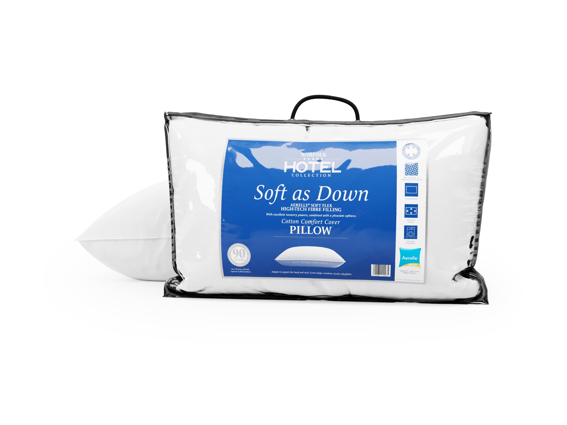 Ultimate comfort with the Norfolk 5* Hotel Collection Premium Soft as Down 74x48cm pillow, featuring a blend of down-like siliconised fibre and soft cotton cover.